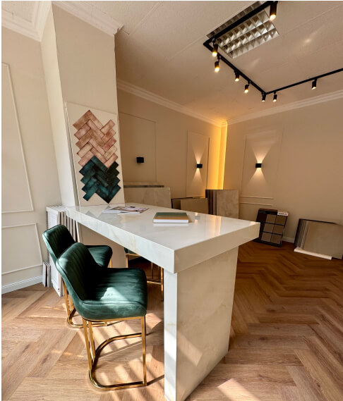 Auf rund 270 m² ist aus einer in die Jahre gekommenen Geschäftsstelle eine exklusive Betriebsstätte entstanden – ein Ort, der modernes Design, handwerkliche Präzision und Liebe zum Detail vereint.